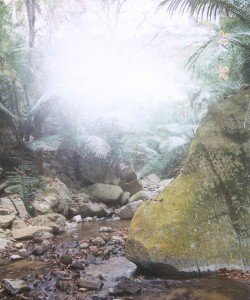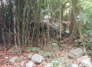 หลังจากนั้นก็จะมีเส้นทางเล็กๆ ที่ชาวกระเหรี่ยงทำเอาไว้สำหรับเดินไปหาของป่า ซึ่งจะมีคนในพื้นที่เท่านั้นที่สามารถจะเข้าไปได้ เพราะมันเริ่มเข้าสู่ป่าดงดิบจริงๆ ผมยึดการเดินเลาะตามริมห้วยเป็นหลัก เดินไปตามเส้นทางเก่าๆ ซึ่งมองดูเผินๆแทบจะไม่รู้เลยว่าเป็นทางเดิน เพราะมีใบไม้แห้งทับถมจำนวนมาก ทำให้สังเกตุค่อนข้างยาก บางแห่งก็ต้องเดินข้ามห้วย บางแห่งก็ต้องเดินไปตามริมห้วย พื้นที่ป่าที่เดินผ่านส่วนใหญ่จะเป็นป่าไผ่ซาง และไม้ยืนต้นขนาดใหญ่โดยเฉพาะต้นไทร ที่แปลกอย่างหนึ่งคือพวกเราไม่เจอนกเงือกเลยซักตัว ซึ่งปกติแล้วบริเวณนี้จะมีนกเงือกชุกชุมมาก ไม่ว่าจะมาครั้งใดผมมักจะเจออยู่เสมอ ถึงแม้จะไม่เห็นตัวก็ยังคงพอจะได้ยินเสียงร้องบ้าง แต่ตอนนี้มันเงียบเลยจริงๆ ซึ่งเปรียบเสมือนเป็นสัญญาณบอกว่าบริเวณป่านี้ไม่มีความอุดมสมบูรณ์แล้วนะ… ให้ตายเถอะนกเงือกอยู่ไหน……